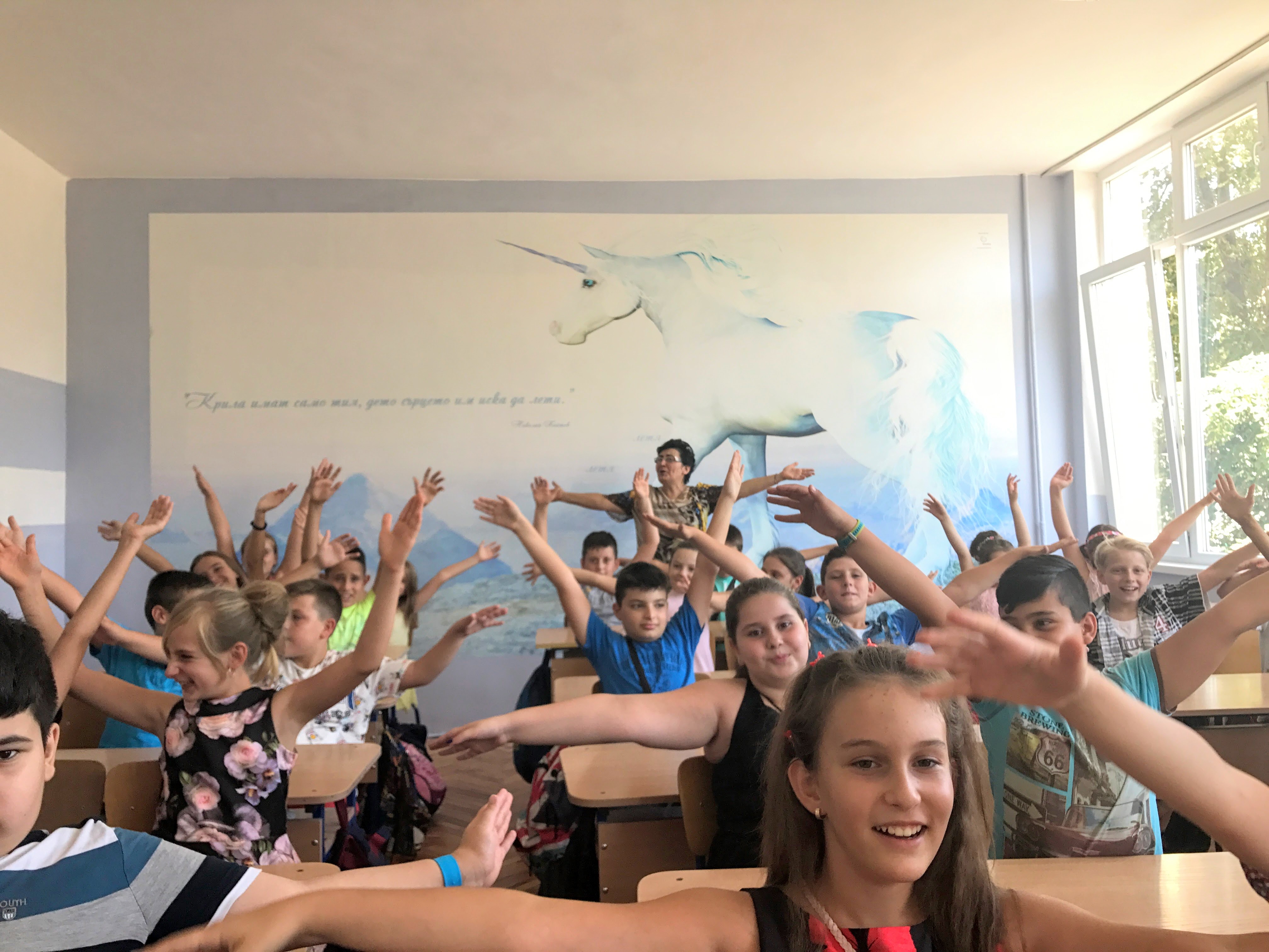 These are comments heard from the rooms and corridors on the third floor of Lyuben Karavelov Primary School. Children with gleaming eyes and smiling faces rumble into each room to see everything. Joy and excitement are in the air. The “culprits” for this joy are the people from the LightSource Charity, represented by Mrs. Albena Spurling.